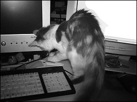 Here we have this week’s birthday boy, doing one of his favorite things – sitting on my desk and waiting for an opportunity to interfere with whatever the heck it is I’m doing.