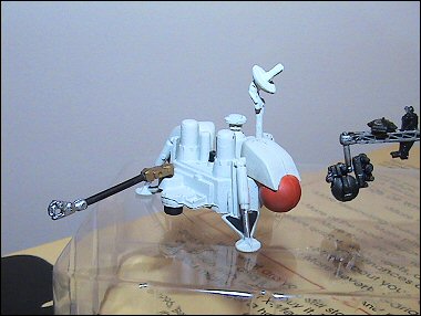 VikingA bit smaller, but also a bit sturdier, this is a Furuta toy of NASA’s Viking Mars lander. It too has to be assembled, but it’s quite a bit more solidly build than Voyager. (That may not be a fair comparison, since Viking landers were built kinda like tanks, and Voyager probes weren’t.) I was a bit disappointed that the choco egg had been removed from the package! I like this little model, but I’m not sure about seeking out the rest of the Furuta space series (there are almost 20 other NASA/space exploration Furuta toys; there’s also a Furuta Star Trek ship range that I ain’t even gonna touch, for that way lies madness).