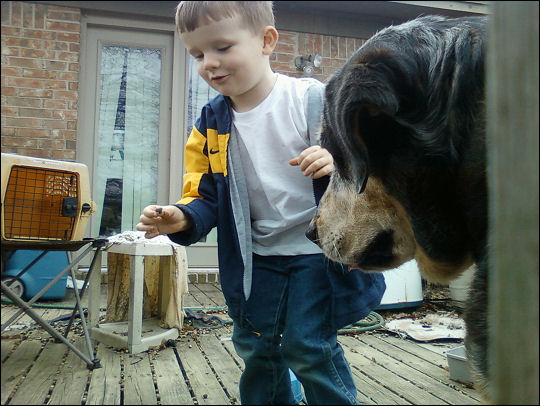 Today little E and I had some outside chores, and after that we went to spend some time with the big Z. (Technically, she should be the big X, but work with me on this one – besides, my Z Dog came a bit too close to being an ex-dog here.) Xena was happy to have some company.