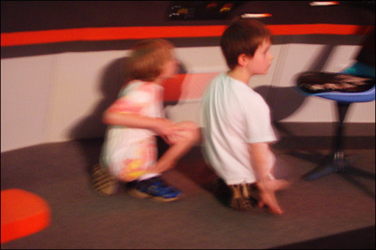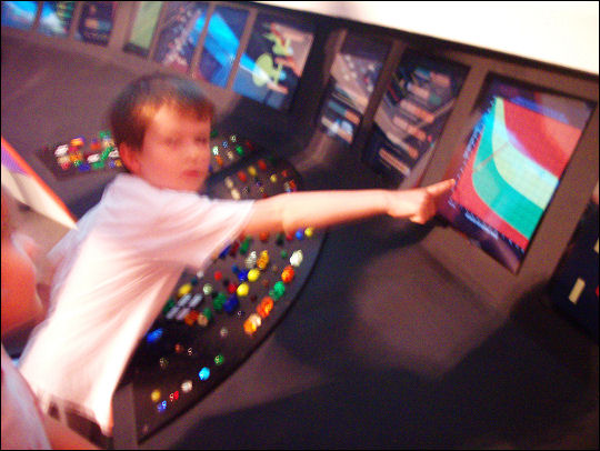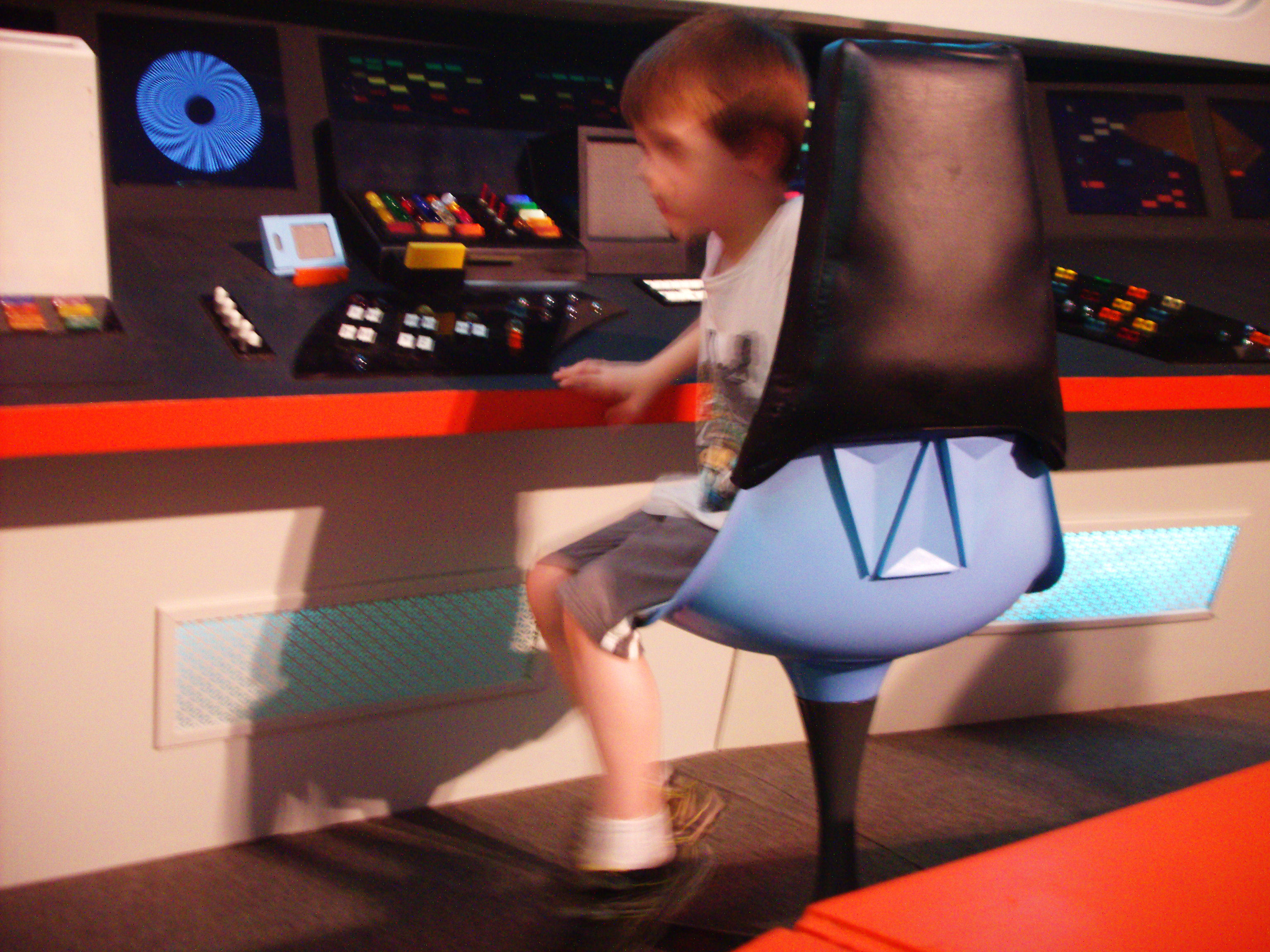 While I was able to restrain my self from Pushing All The Buttons, the boys quickly became a blur of activity, trying to save the universe from the Klingons.