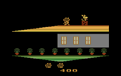 The Game: You are the world’s most famous lasagna-munchin’ mouser, hopping from fencepost to fencepost, grabbing airborne hamburgers (!!?) and dodging potted plants being thrown at you. Eventually you reach home, where you can antagonize Odie the dog, who has somehow made his way to the top of Jon’s house. (Atari, never released [developed circa 1984])